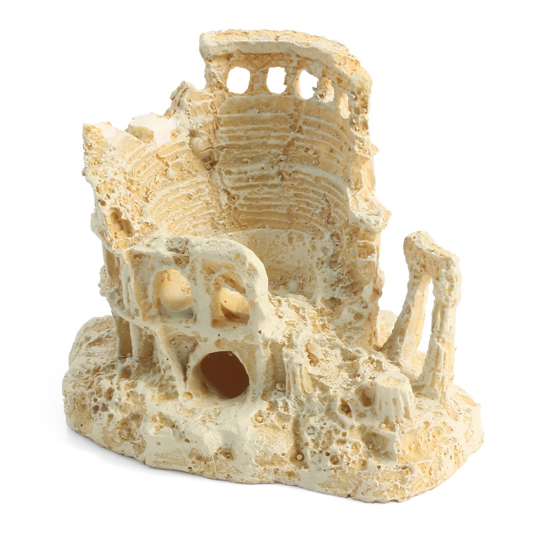 Этот реалистичный грот в виде разрушенного античного здания - незаменимый элемент для оригинального оформления очень маленьких пресноводных аквариумов ("нано-аквариумов"). С помощью маленьких гротов можно оформить небольшой объем так же интересно и оригинально, как и большой аквариум. Изготовленный из нетоксичной полиэфирной смолы, очень прочный и долговечный, удобный в эксплуатации и совершенно безвредный для аквариумных жителей, этот грот прослужит вам долгие годы, украшая собой ваш "компактный подводный мир" - на радость вам и его обитателям.