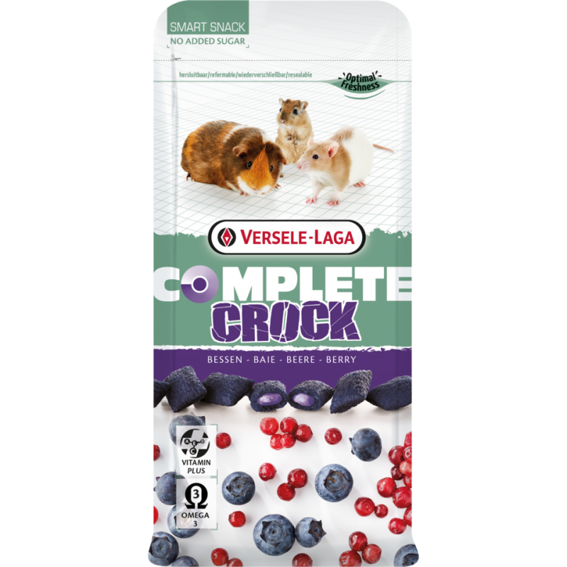 Complete Crock Berry – вкусное полезное сбалансированное лакомство для морских свинок, крыс, хомяков и других грызунов. Небольшие «подушечки» великолепно хрустят благодаря полезным растительным волокнам и злакам, обеспечивая отличное пищеварение, здоровье зубов вашего питомца, их правильное стачивание и удовлетворяя инстинкт грызения.