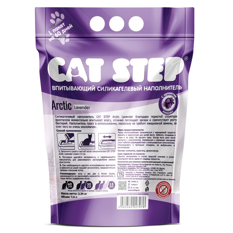 CAT STEP Arctic Lavender Наполнитель впитывающий силикагелевый, 7.6 л