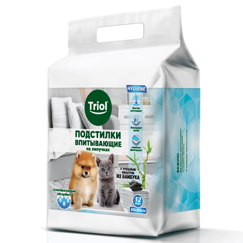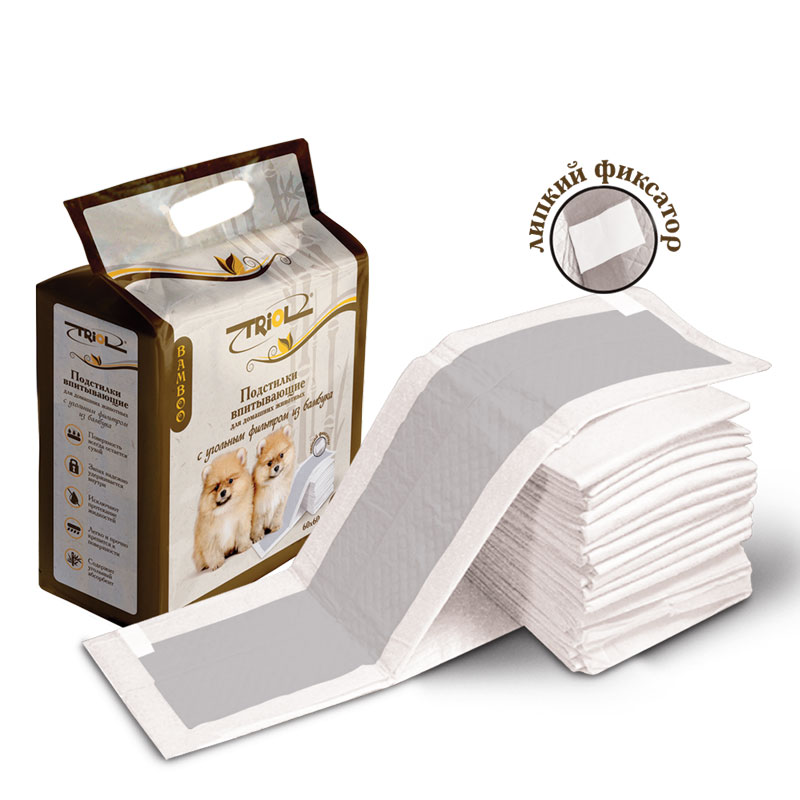 Подстилки впитывающие для домашних животных содержат угольный абсорбент, изготовленный из бамбука, который отлично впитывает жидкость, оставляя поверхность сухой, и надежно удерживает запах.