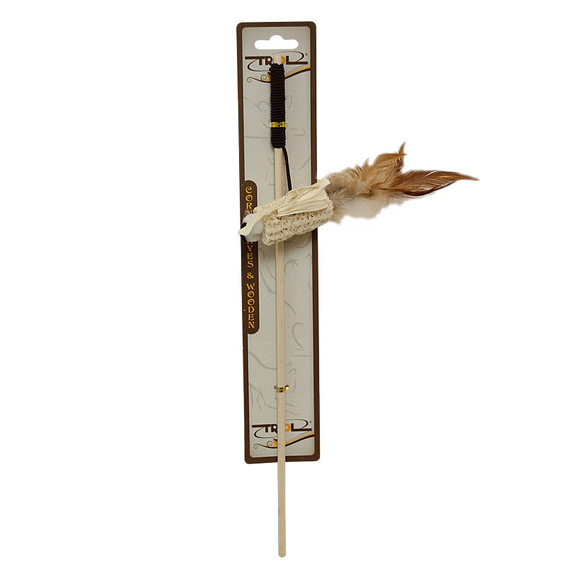 Удочка-дразнилка для кошек из кукурузы, перьев и дерева с игрушкой "Птичка". Игрушка изготовлена из натуральных материалов, в том числе кукурузных листьев - натурального материала, безопасного для пищеварения вашего питомца.
