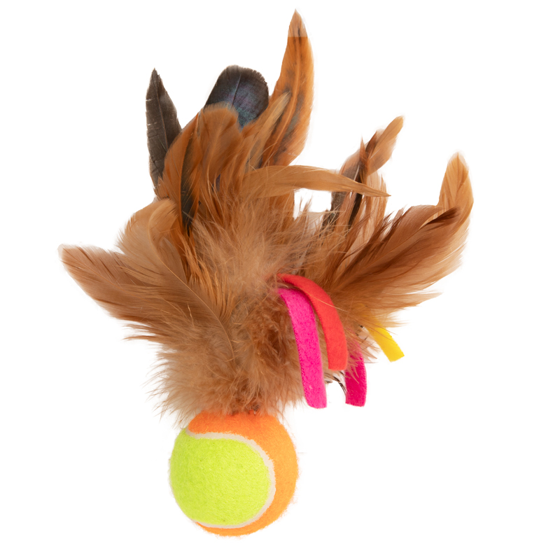 Игрушка для кошки "Теннисный мячик с перьями". Такая игрушка порадует вашего любимца, а вам доставит массу приятных эмоций, ведь наблюдать за игрой всегда интересно и приятно.