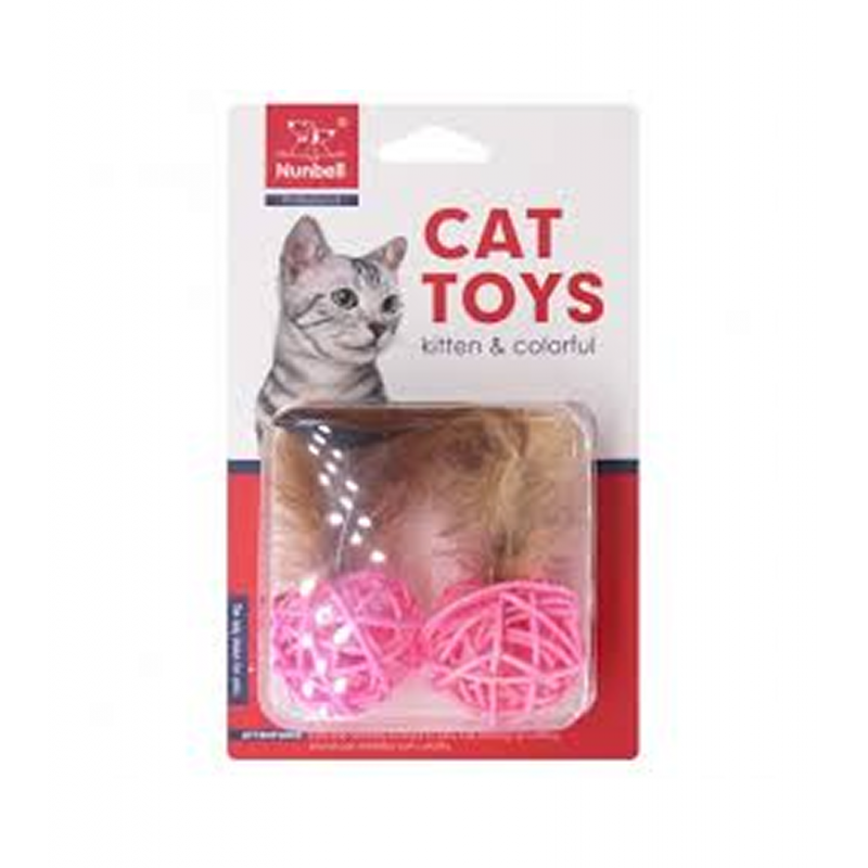 Nunbell Игрушка верёвочный мячик с перьями (3,5 см)