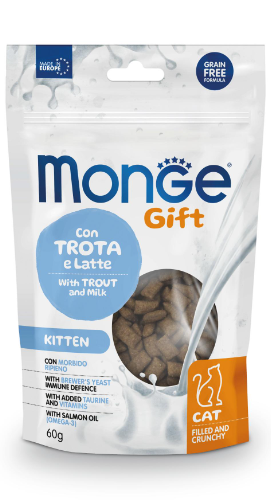 Monge Gift Kitten with Trout and Milk — это дополнительный корм для растущих котят.