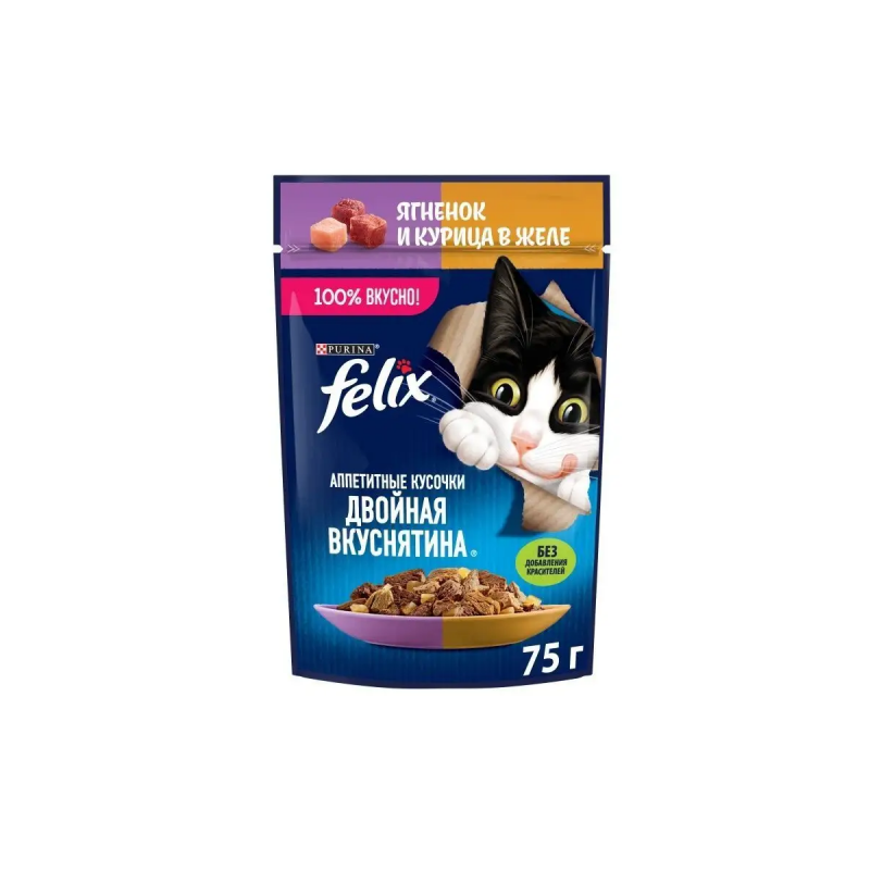 Felix Double Влажный корм ягненок и курица в желе для кошек, 75 г