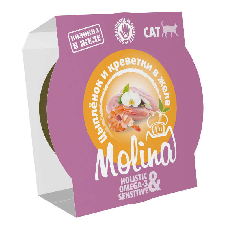 MOLINA Holistic Ламистер с цыпленком и креветкой в желе для взрослых кошек, 75 г