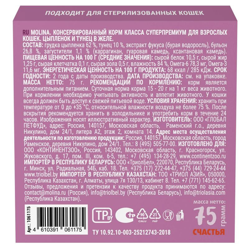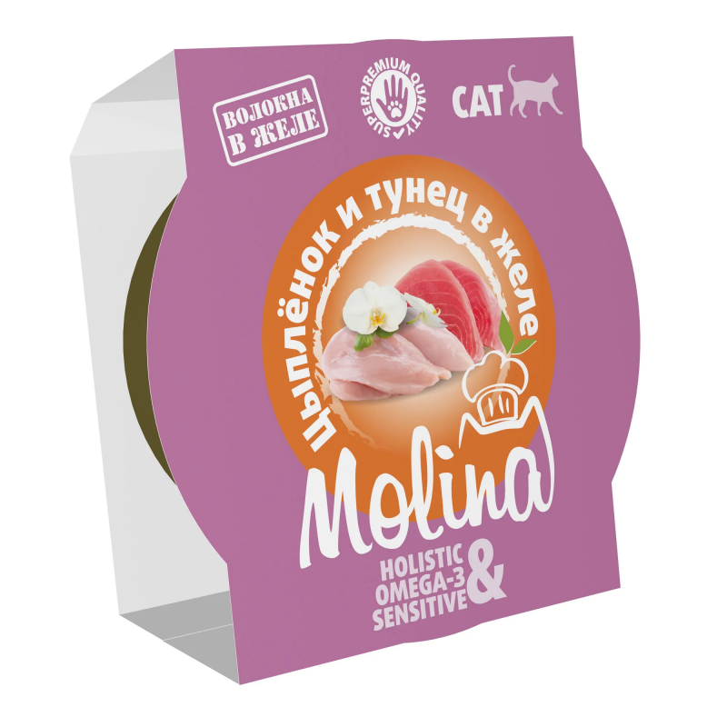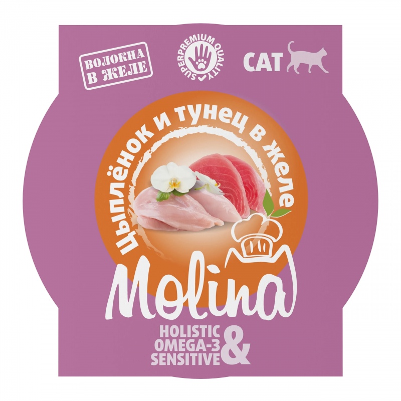 MOLINA Holistic Ламистер с цыпленком и тунцом в желе для взрослых кошек, 75 г