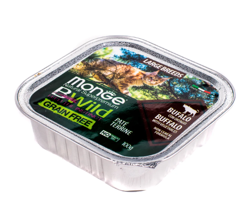 Monge (Монж) Cat Bwild GRAIN FREE (холистик) полнорационные беззерновые консервы из мяса буйвола с овощами для кошек 100г.