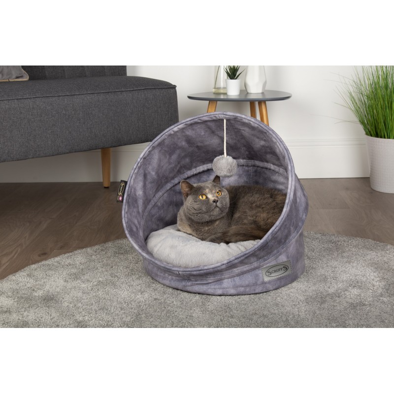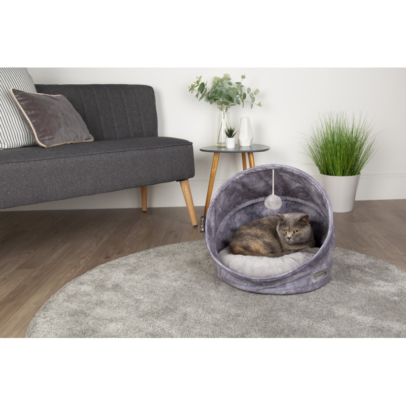 SCRUFFS Лежанка для кошек "Kensington Cat Cave", экозамша, серый, 44 x 44 x 48 см