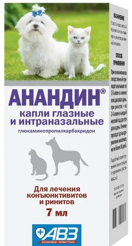 Капли глазные и интраназальные Анандин применяют для лечения конъюнктивитов и ринитов у собак и кошек.