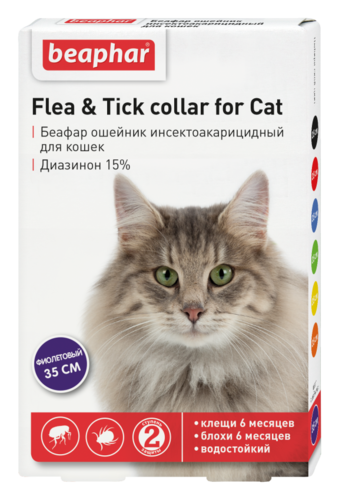 Ошейник для кошек от блох и клещей фирмы Беафар подходит для питомцев с шести месяцев.