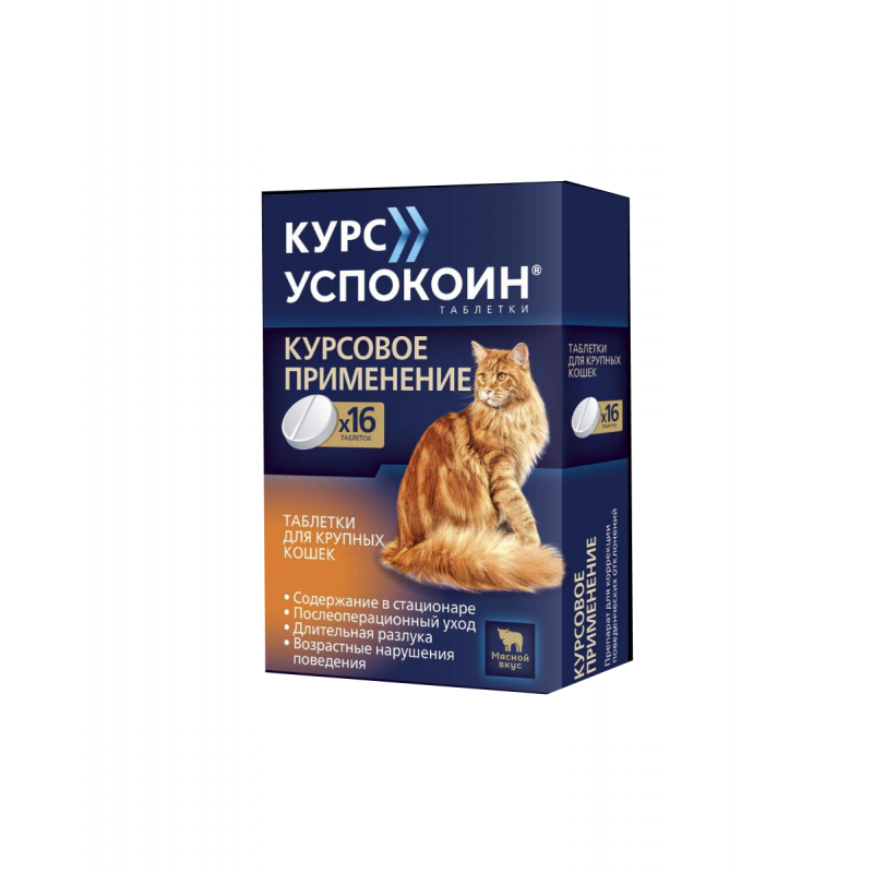 Курс Успокоин Таблетки успокаивающие для крупных кошек, (упаковка 16 шт)