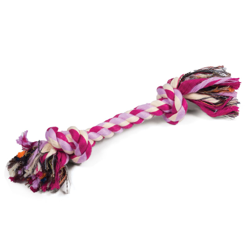 Веревка с двумя узлами предназначена для собак мелких пород, которые обожают играть с такими игрушками, грызть их, трепать и носить в зубах. Веревочные игрушки отлично массируют десны и очищают зубной налет во время игры.