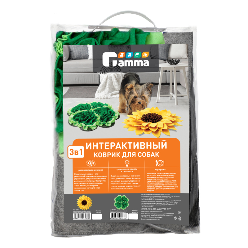 Нюхательный коврик - это уникальный комплекс развивающих упражнений для развития мозговой деятельности питомца. Выполняя упражнения, питомец вынюхивает вкусняшку и думает, как заполучить желаемую цель. Материал, из которого изготовлен нюхательный коврик - экологичное и гипоаллергенное синтетическое полотно, которое применяется при создании детских развивающих игрушек.