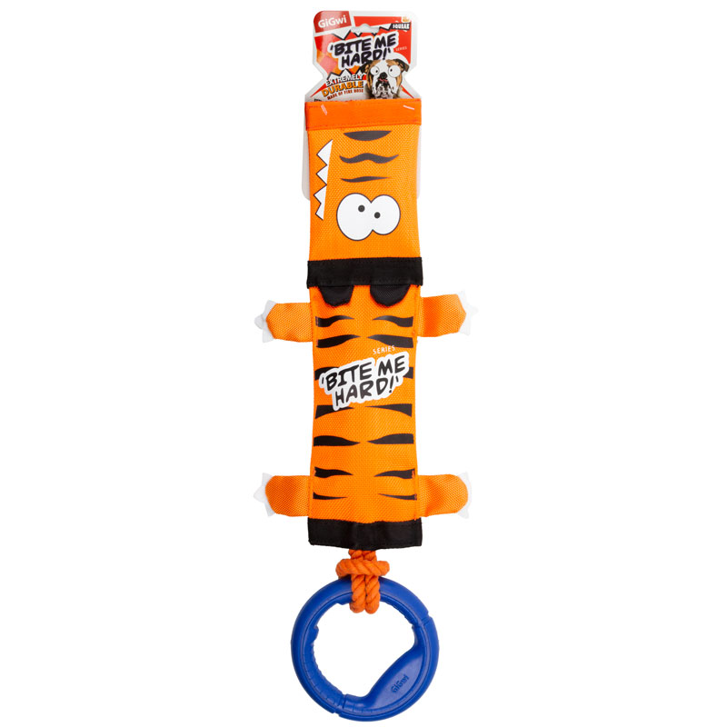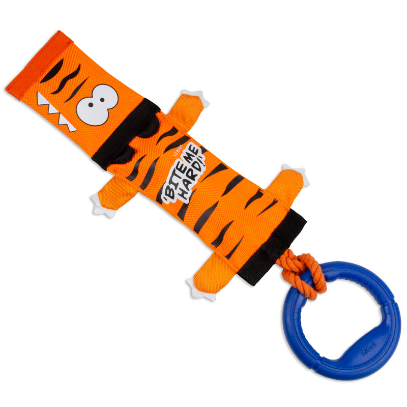 Игрушка для собак "Тигр" выполнена из прочного материала - пожарного шланга, усиленного веревкой и резиновым кольцом. Игрушка отлично подойдет для активных игр.