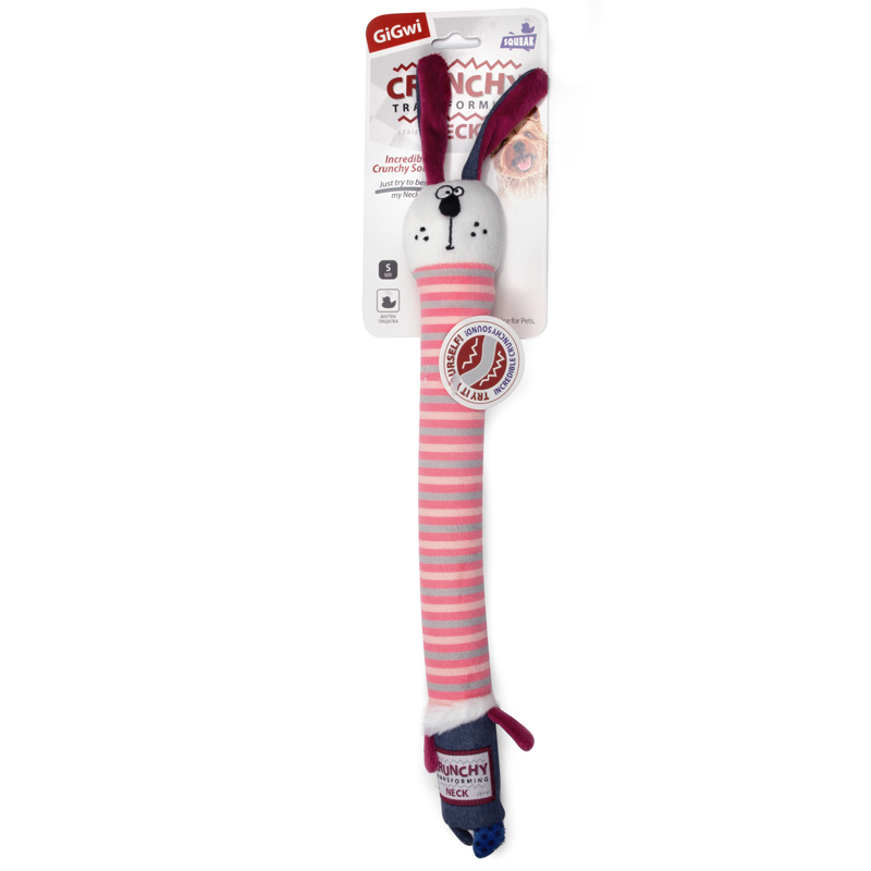 Игрушка для собак из серии CRUNCHY NECK с пищалкой и с хрустящей трансформирующейся шеей. Издает хрустящий звук, просто попробуйте согнуть шею!