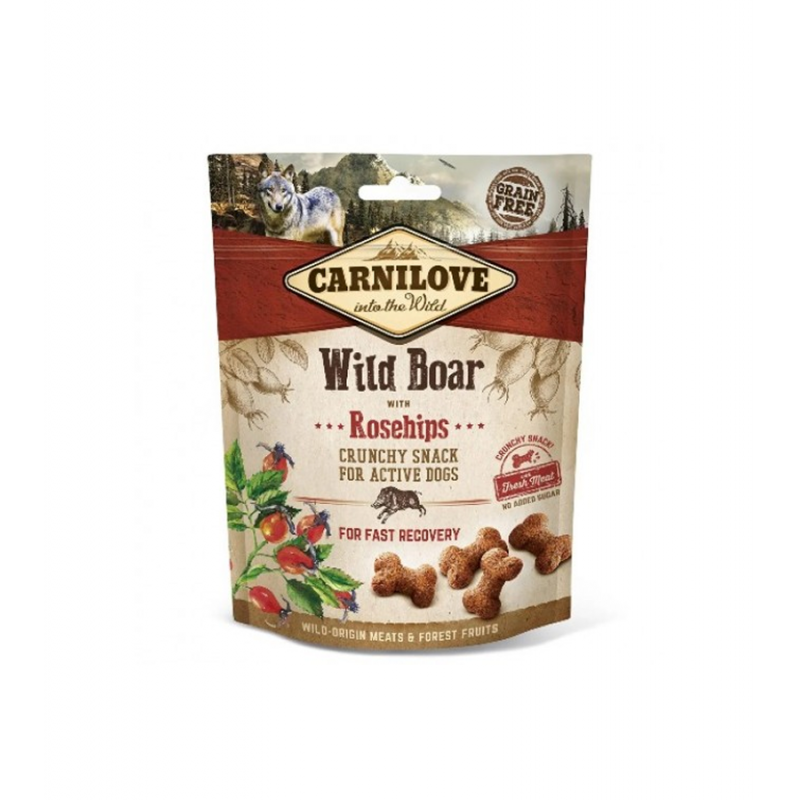 Вкусное лакомство с диким кабаном для активным собак. С шиповником, натуральным источником витамина С, для быстрого восстановления.