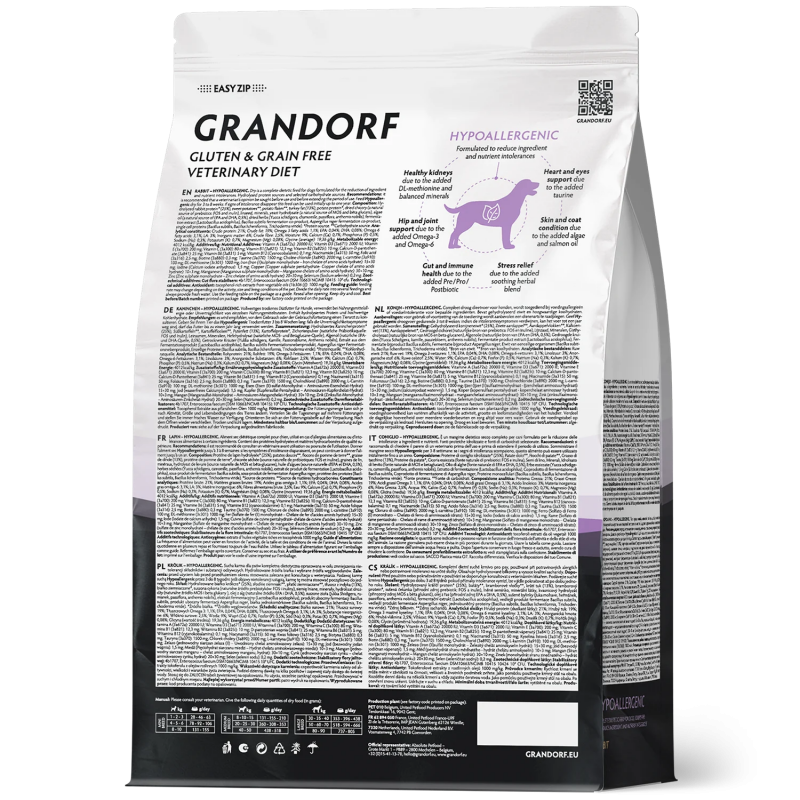 Полнорационный диетический корм для собак, применяемый при пищевой аллергии или пищевой непереносимости.