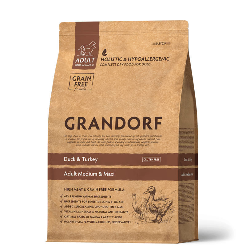 Беззерновой гипоаллергенный состав в сочетании с диетическим мясом утки и мясом индейки помогает предотвратить аллергические реакции и пищевую непереносимость, обеспечивая иммунное и пищеварительное здоровье.