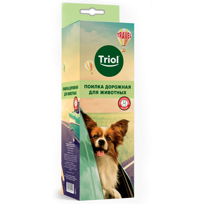 Triol Поилка TRAVEL дорожная для животных "Компакт", оливковая, 300мл, d75 x 215 мм
