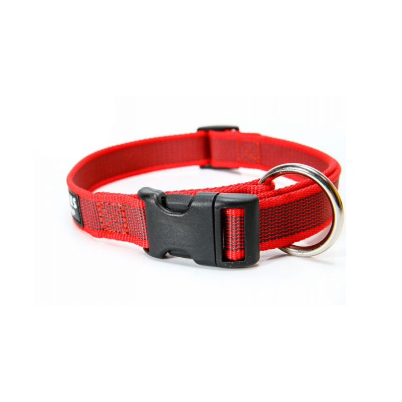 Ошейник изготовлен из прочного полиэстера с водо- и погодостойким плетением. Материал рассчитан на интенсивное использование и суровые погодные условия, при этом обеспечивает комфорт. Прочная застёжка и фиксатор безопасности надёжно удерживают ошейник на собаке. Размер легко регулируется, чтобы обеспечить безопасную и удобную посадку.