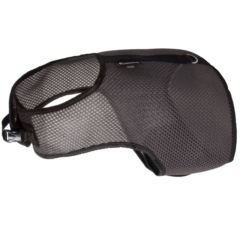 Изящная шлейка из сетки позволит дышать коже, изготовлена с использованием металлической и пластиковой фурнитуры. Шлейка надежно регулируется с помощью липучек, фиксируется в двух местах - шеи и груди.